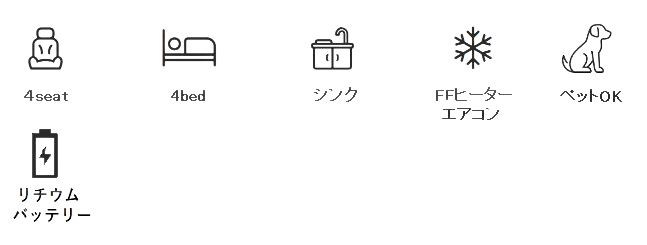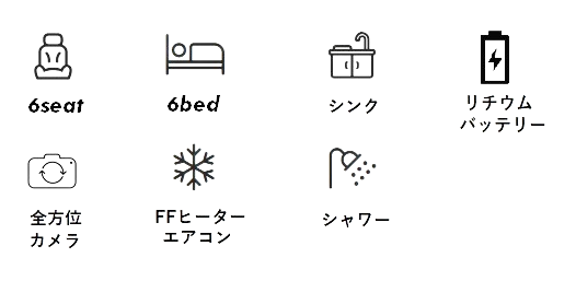 暑い夏でも寒い冬でも快適に過ごせるように、家庭用エアコン、FFヒーターと強力なサブバッテリーが搭載されています。就寝時にエンジンストップしたまま8時間はしっかり使えるので、キャンプ場や道の駅でも快適な車中泊が可能です!